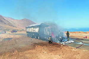 Camión arde en llamas en ruta B-1 cuando se dirigía a los cenizales