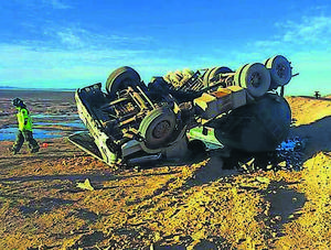 Un lesionado dejó el volcamiento de un camión en María Elena
