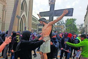 Encapuchados queman imagen de Cristo y gobierno anuncia querella