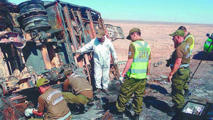 Equipo perició camión que ardió con vehículos de Carabineros