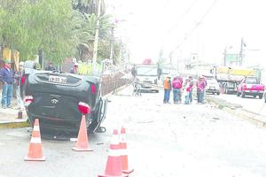 Vehículo chocó un poste y volcó en Prat: hay tres heridos graves