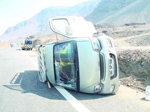 Dos personas quedan con heridas leves luego de volcar en vehículo