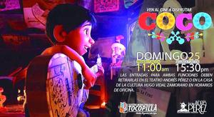 Exhibirán "Coco" este domingo en el teatro