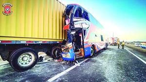 7 lesionados de carácter grave en choque entre bus y camión