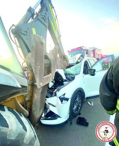 Vehículo terminó incrustado en un cargador frontal