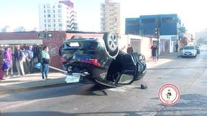 Colisión y volcamiento en Avenida Argentina dejó tres lesionados