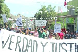 Familiares de jóvenes encarcelados protestan en el desfile aniversario