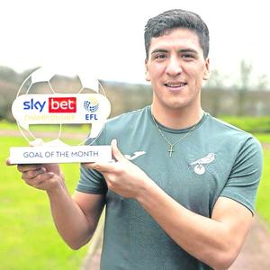 Marcelino Núñez recibió el premio del mejor gol del mes de febrero entregado por la Championship