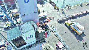 Realizaron simulacro de rescate desde una grúa portuaria
